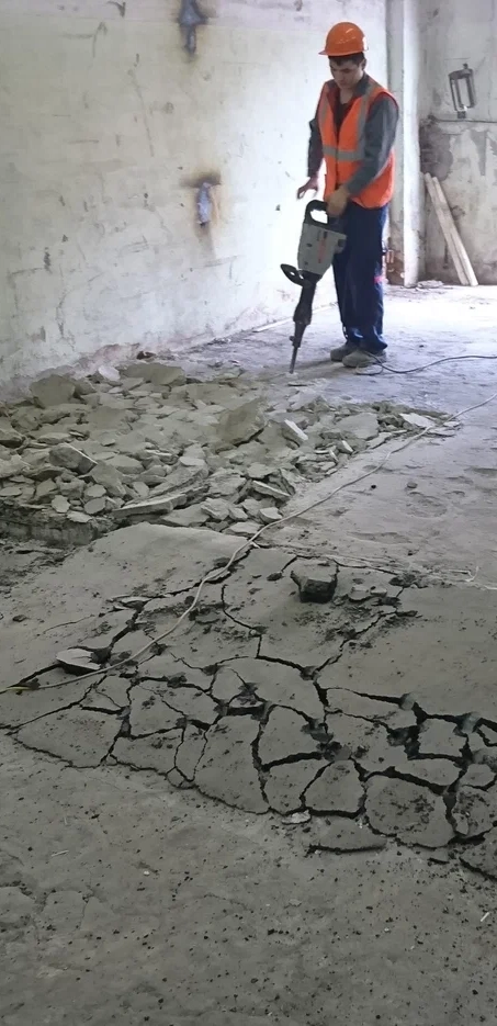 Полный цикл работ - демонтаж старого бетонного пола, устройство песчанного