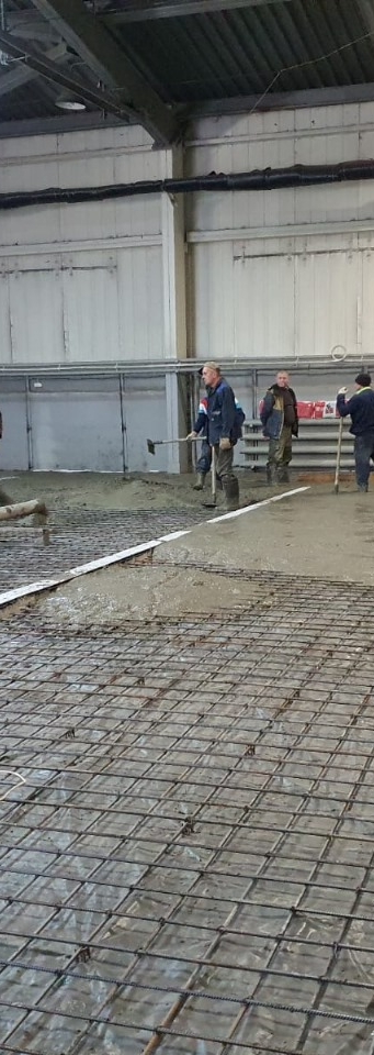 Работы - демонтаж старых бетонных полов, устройство песчаного и щебеночного основания, армирование, бетонирование, затирка упрочняющей смесью.